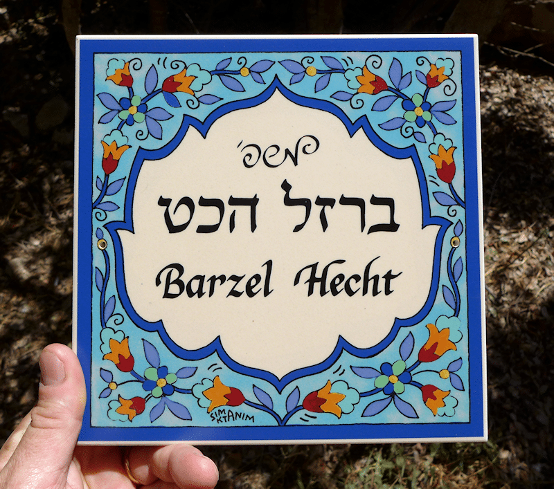 שלט קרמיקה עם מסגרת עץ 13*18